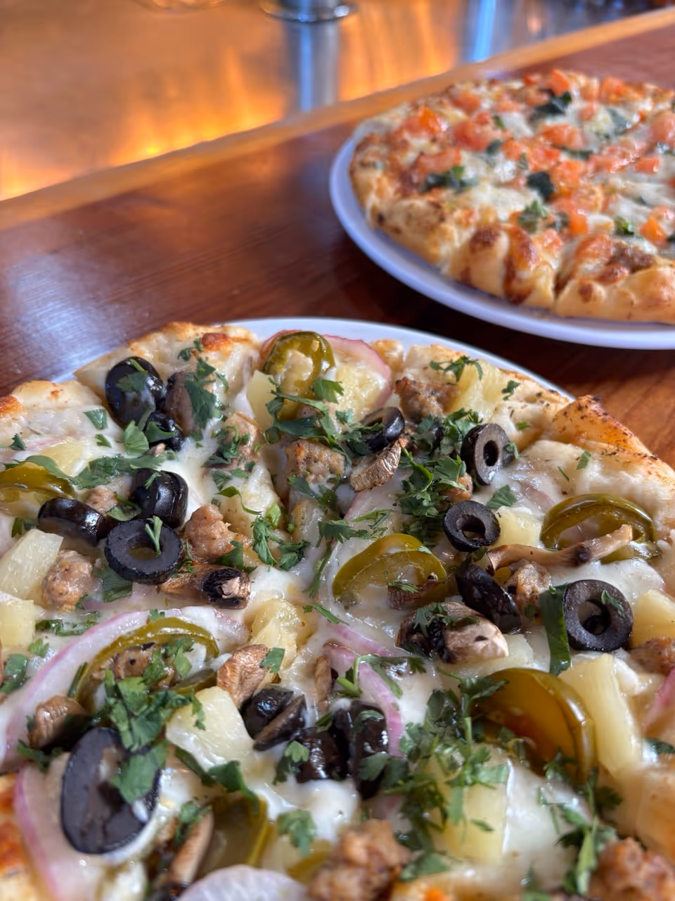 Thin-crust and crispy with pepperoni, Italian sausage, fresh garlic, red onion, jalapeños and topped with feta cheese.