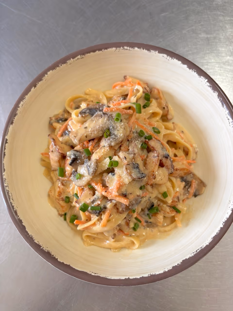 Roasted chicken, fresh garlic, mushrooms, sun-dried tomato, and topped with feta cheese. Made with garlic butter sauce.